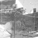 Fotos antiguas de distintos aspectos de la cantera y la muralla del lienzo oeste del castillo de Peñaflor.