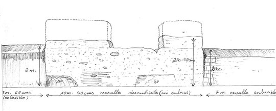 El tramo que se encuentra a continuación en el solar municipal, es de unos 7 metros y medio, presentando las mismas características constructivas que el anterior.