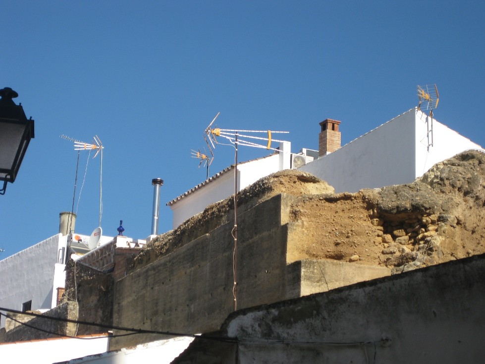 - Casa nº 6. En la pared posterior tiene la casa unos 8 metros de longitud de muralla con algunos tramos enlucidos y unos 4 metros 78 cms de altura. Presenta una oquedad a metro y medio del suelo con ausencia de muralla.