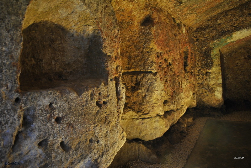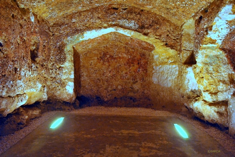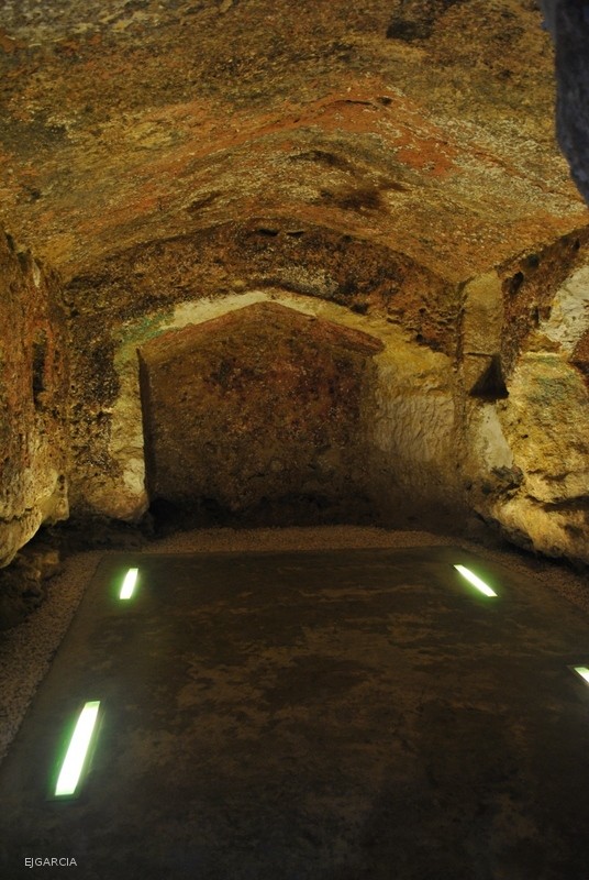 Desde el punto de vista de los paralelos de estas construcciones, si nos remitimos a ejemplos hispanos y más concretamente del ámbito regional, podemos señalar la necrópolis de Carmona, que también presenta tumbas excavadas en el substrato rocoso, aunque la tipología de las construcciones difiere considerablemente por tratarse mayoritariamente de tumbas de pozo cámara, donde el acceso es cenital y las tumbas no muestran por tanto línea de fachada. Un caso con mayores similitudes es el de la necrópolis rupestre romana del camino de Granada en Osuna, conocida popularmente como “Las Cuevas”, que también cuenta con nichos para el depósito de cremaciones, aunque presenta de forma muy abundante inhumaciones en fosas excavadas en el pavimento rocoso de las cámaras.