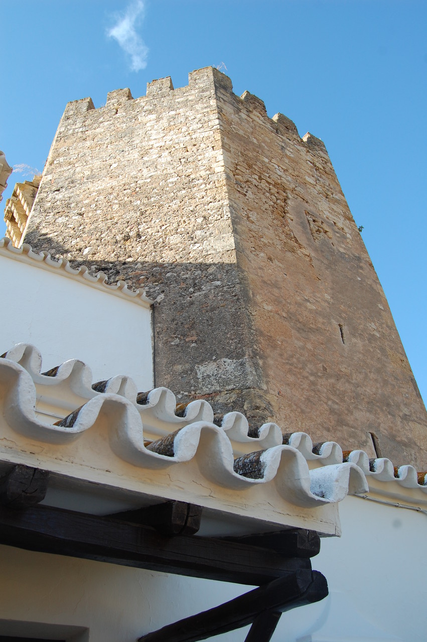 El acceso al torreón se realiza desde una puerta con arco apuntado situada a nivel del suelo en el lado de poniente, sobre la puerta se distingue un arco de descarga formado por dovelas de piedra y, en la parte más elevada del muro, un balcón de matacanes con modillones de rollo de clara ascendencia hispanomusulmana, cuyo vano en la actualidad ha sido aprovechado para ubicar la campana del santuario, pero que en origen su finalidad sería la protección de la entrada al torreón.