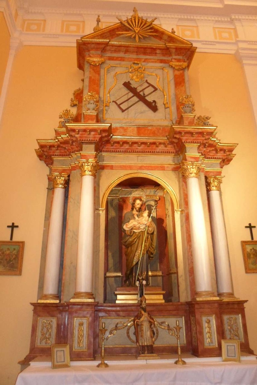El retablo que la sigue, también es neoclásico, del segundo tercio del XIX, que está compuesto por banco, un cuerpo con hornacina que alberga a San José con el Niño de la misma fecha, cuatro columnas corintias, cornisas y encima de ésta el símbolo de San José Carpintero, coronado con un frontal triangular.