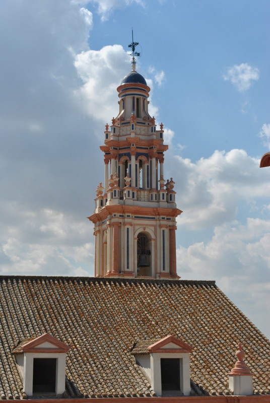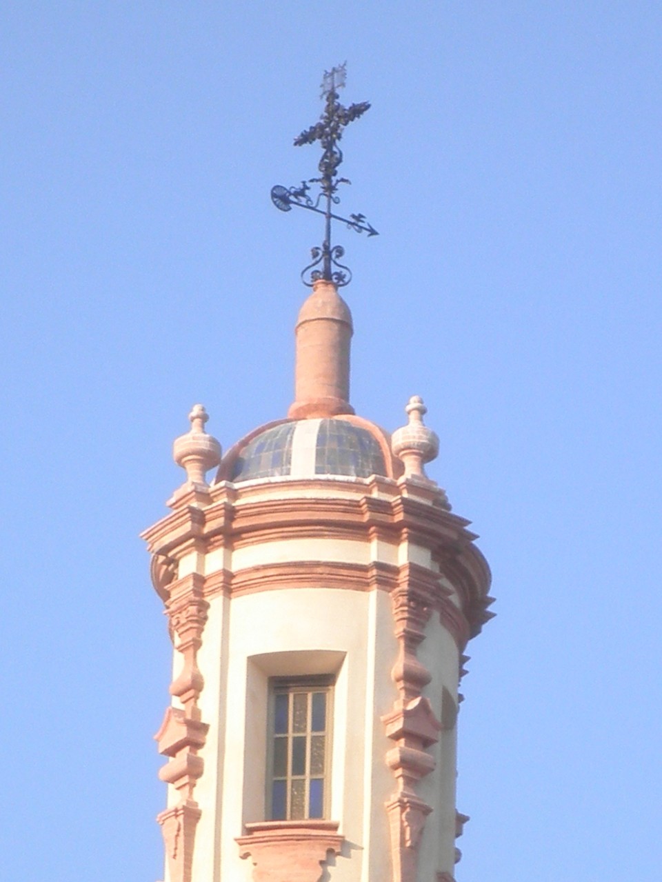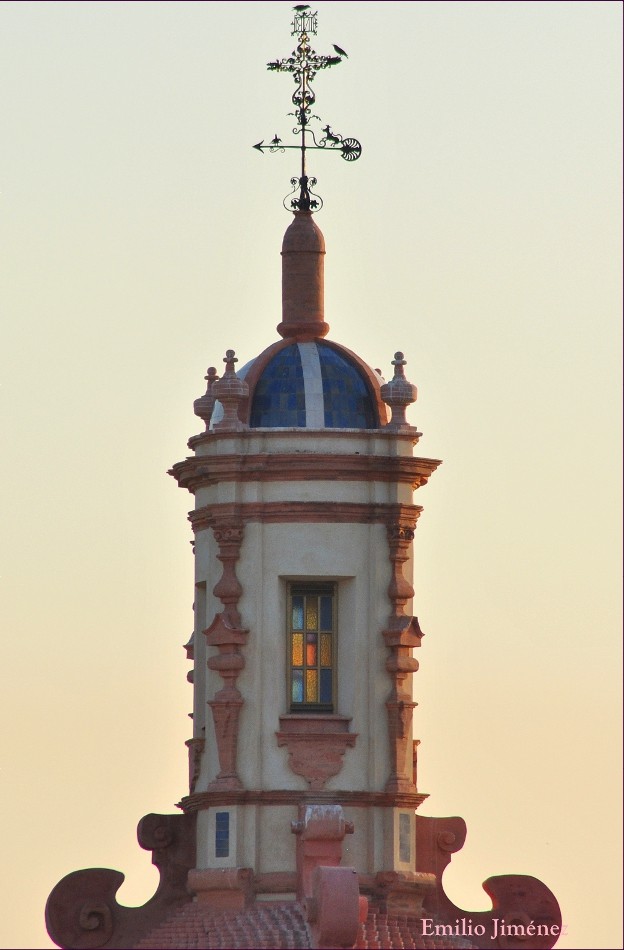 El último cuerpo lo forma un cilindro terminando en una cúpula con azulejos y rematado por un agujón con cruz y veleta. Este cuerpo está compuesto de ocho pilastras parabólicas o pilastras con volutas.