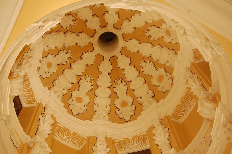 Es de destacar la composición de frisos y cornisas realizadas en esquinas y rincones, que se deslizan por encima de las pilastras y pilares, así como la ornamentación en el centro de las bóvedas.