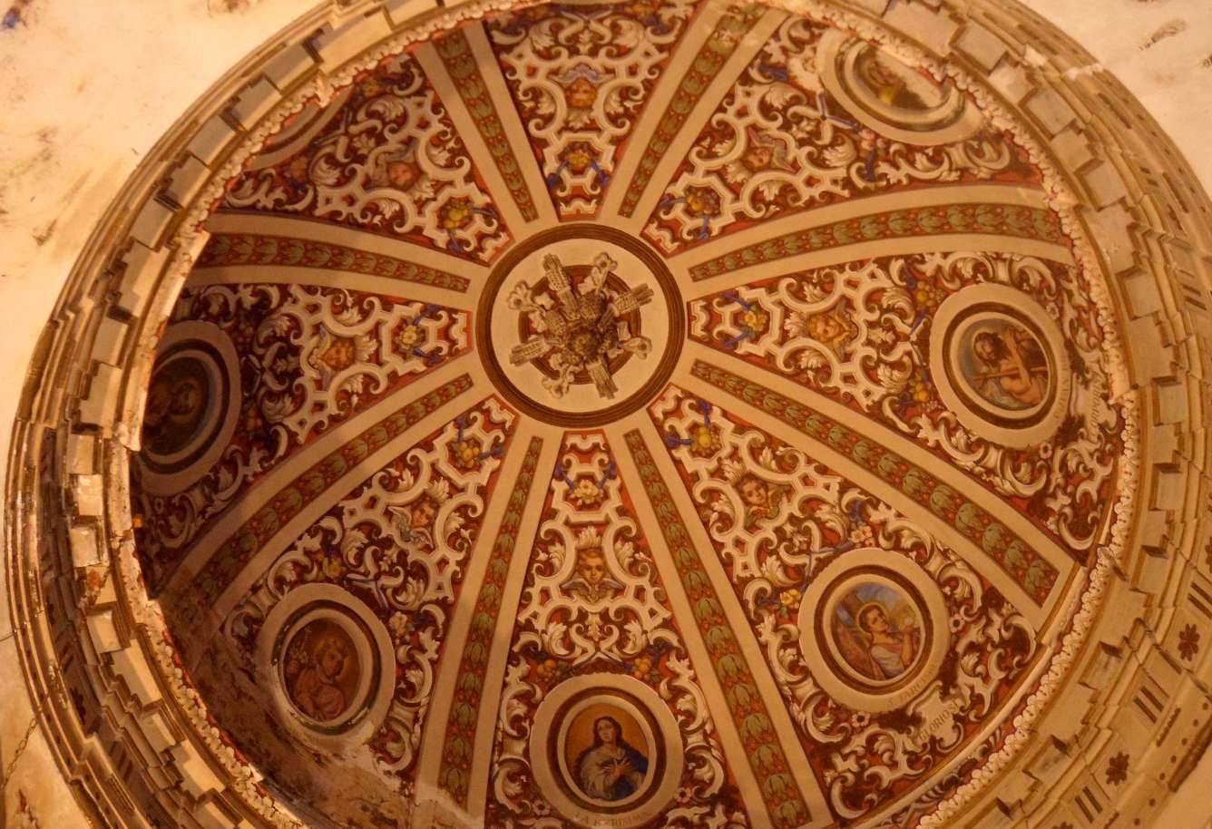 El crucero está cubierto por una cúpula sobre tambor y linterna. En el interior de éste se encuentra una rica ornamentación de yeserías muy equilibrada, construida por Antonio Caballero, que forma balaustre en la parte inferior del tambor, y en el centro toma forma de estípites radiales.
