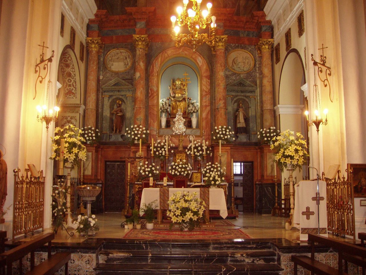El retablo mayor está fechado en 1794, su estilo es neoclásico, y está construido en madera imitando al mármol.