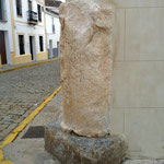 - Esquina suroeste de la Iglesia. Basa sobre un plinto compuesta por tres toros decrecientes, separados entre sí por dos listeles, de 32 cms. de altura; sobre ella fuste de columna en mármol blanco de unos 60 cms. de diámetro y 120 cms de altura. Altura total 157 cms.