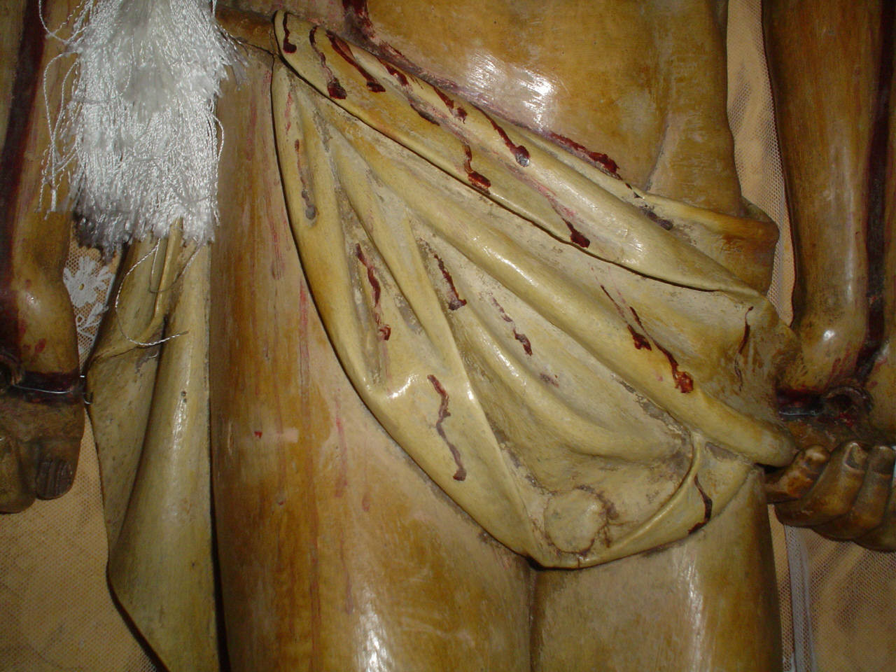 Otro elemento destacado en su técnica es la policromía, realizada al óleo pulimentado, y tan cuidada como la estructura, lo que realza las livideces cadavéricas y los tenues hematomas producidos por la flagelación.